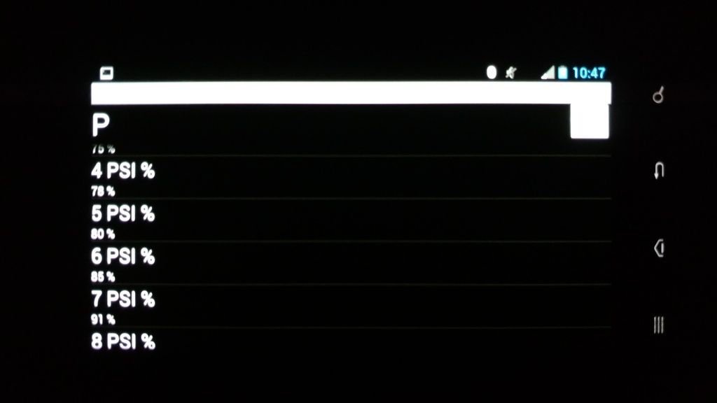 Next we have PSI% listed 0-17 in increments of 1. This feature allows you to set the amount of stock power based on boost. It allows you to ramp up the power from 0-17psi, effectively reducing smoke and making the truck more driveable.
